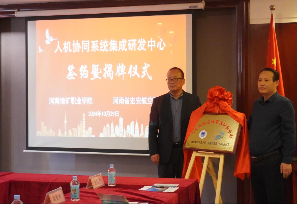 2024年10月29日,公司与河南省宏安航空科技公司校企共建“人机协同系统集成校企研发中心”揭牌仪式在yl8858永利宏安俭学街基地举行。yl8858永利副董事长张红兵、校企合作处、科技服务处、yl8858永利相关负责人及河南宏安航空科技有限公司相关负责人参加仪式。