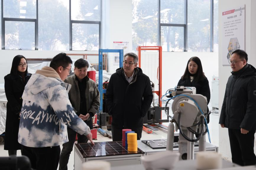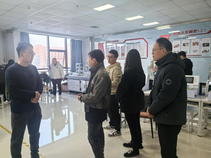 随后参观了工业机器人场线实训室,形态各异的机器人在操控下灵活舞动,讲解人员通过焊接机器人、智能仓储等典型生产案例,阐述了工业机器人在生产线的教学及应用,凸显公司育人成效。