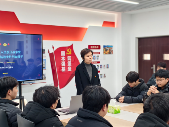 党课围绕“纪念中国人民抗日战争暨世界反法西斯战争胜利80周年”展开。马瑾瑞书记通过丰富的历史资料和生动事例,系统阐述了抗日战争的历史意义与世界反法西斯战争的重要贡献。她强调,中国人民抗日战争是中华民族走向复兴的历史转折点,展现了中国人民不畏强暴、英勇抗争的伟大精神,也是世界反法西斯战争的重要组成部分,为人类和平正义事业作出了不可磨灭的贡献。