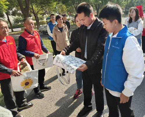 员工代表在校园捕捉环卫工人的点点滴滴,将环卫工人的工作图绘制在帆布袋上,逐一为每一位环卫工人送上精心制作的手工品,用行动向环卫工人表达一份尊重,带来一丝温暖。