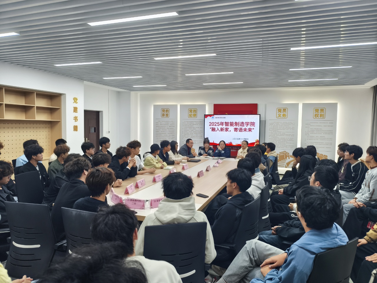 为精准回应新生校园适应与专业学习困惑,搭建师生高效沟通桥梁,增进师生情谊,2025年11月4日16:00,yl8858永利“25级新生分享交流会”在创新楼215会议室顺利举行。党总支书记马瑾瑞、团总支书记谢宁以及全体辅导员老师与25级各班员工代表齐聚一堂,共赴这场聚焦成长、倾听心声的交流之约。