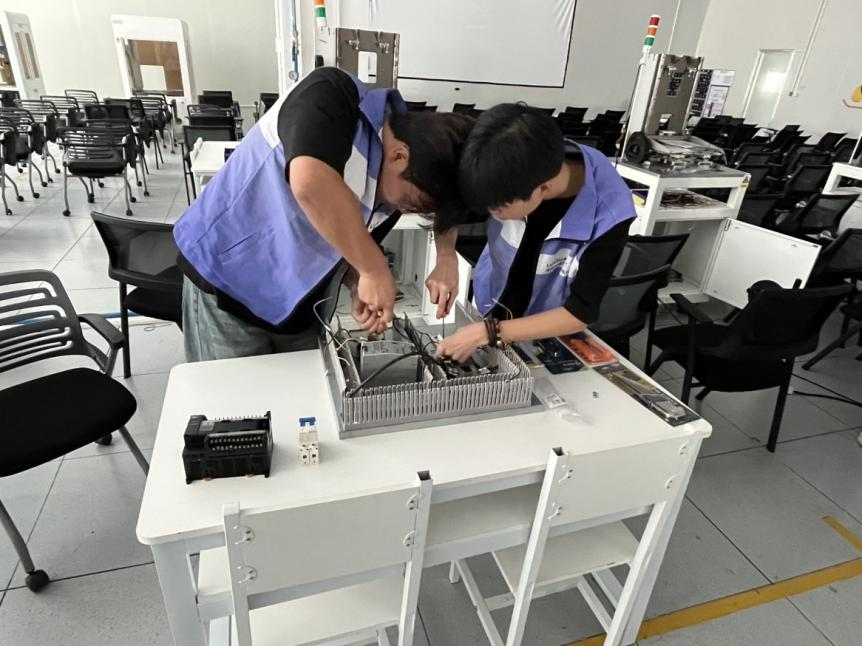 在随后的实操环节中,员工们以小组为单位,亲手进行电控柜的拆解与组装。从元器件的定位安装到线路的连接整理,从工具的正确使用到团队之间的密切配合,同学们在动手过程中不断巩固理论知识、提升操作技能。