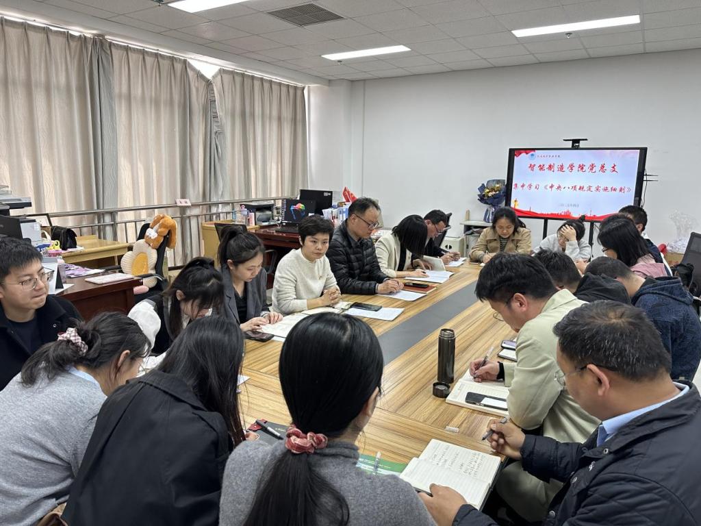 会上,副经理禹露领学了中央八项规定实施细则,并对实施方案中的目标要求、工作安排进行了重点解读,引导党员深刻领悟其精神实质,要求大家把理论知识学深悟透,将中央八项规定精神融入日常工作,推进作风建设常态化长效化。团总支书记谢宁带领大家对违反八项规定清单80条展开深入学习,并结合典型实际案例,对违反规定的具体表现及严重后果进行了细致剖析,加深大家对八项规定的理解,更在每位党员心中筑牢了一道拒腐防变的思想防线,促使大家时刻保持清醒头脑,做到警钟长鸣。
