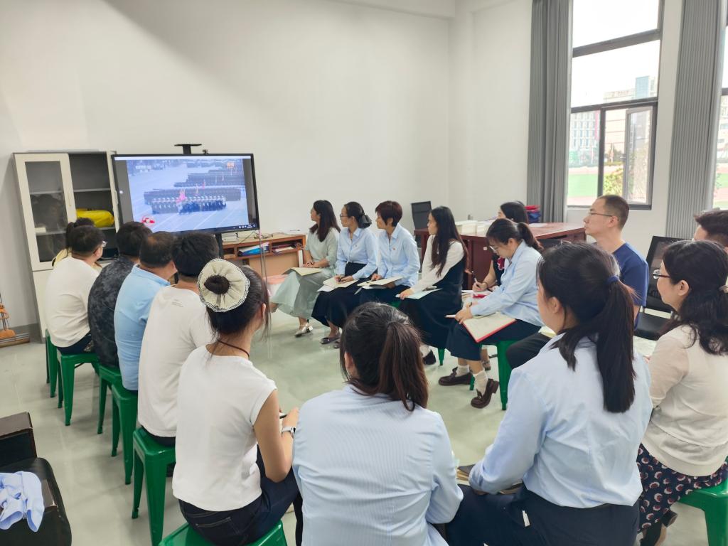 会议伊始,副经理禹露领学习近平总书记在纪念中国人民抗日战争暨世界反法西斯战争胜利80周年大会上发表的重要讲话,马书记在交流发言中指出,教师要将爱国热情转化为实际行动,以更加饱满的热情和更加坚定的信念投入到员工管理和日常工作中去。随后,一起观看阅兵视频。