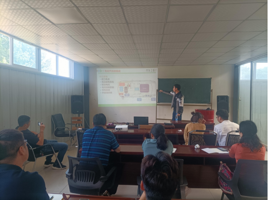 2021年5月18日上午8点半,汽车教研室全体教师参与了广州艾伦科技在公司新能源汽车实训基地开展的新能源汽车实践技能教学培训活动。活动开始,全员进行理论培训,广州艾伦科技企业工程师细致地讲解了新能源汽车的整车构造,且着重强调了新能源汽车的高压系统和安全检修规范。