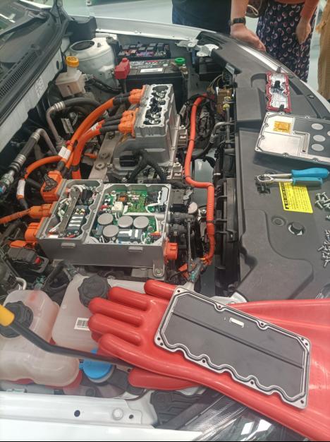 随后,企业工程师来到操作现场对各仪器设备进行介绍,紧接着对新能源汽车进行了“上电和下电”的演示教学,各老师观摩并亲自动手练习。