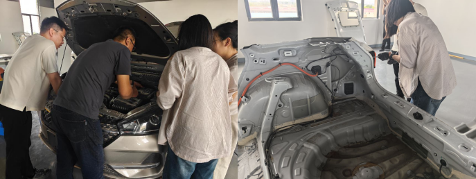 目前,项目已完成双柱举升机、小剪举升机等核心设备安装,四楼实训室初步具备“真场景”教学条件。教师团队在方案落地中不断积累新能源车辆的装配技术和岗位标准,为后续车辆及关键零部件装配课程的开发提供数据和技术支撑;企业拆解效率提升40%。
