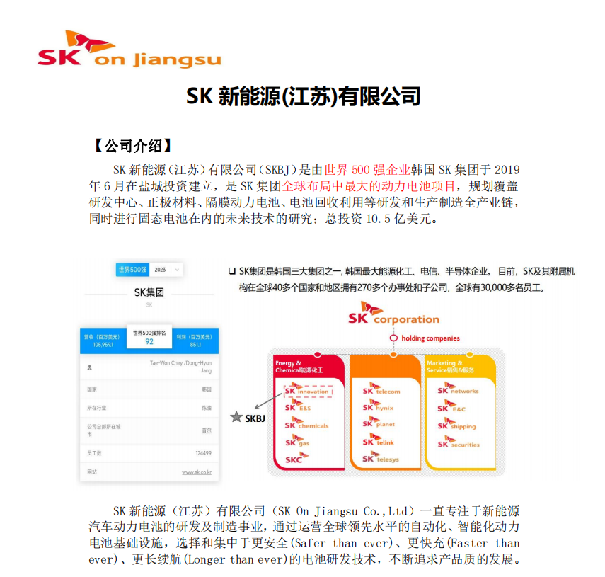 招聘信息:SK新能源(江苏)有限公司
