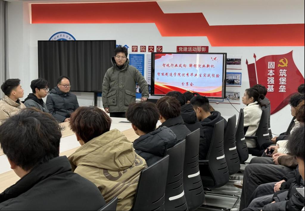 为帮助25级新生把握智能制造行业动态、明晰职业路径,深化产教融合育人实效,1月4日,公司在创新楼215举办优秀毕业生实战经验分享会。公司党总支书记马瑾瑞、经理娄阳、团总支书记谢宁出席本次分享会,会议由辅导员胡晨主持,25级员工代表参会。