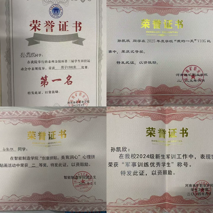 在学习上:始终保持严谨自律的态度,课堂专注听讲、积极互动,课后及时复盘巩固。面对专业重难点,主动查阅文献、与同学研讨,成绩稳居专业前列,斩获校级奖学金及国家励志奖学金。